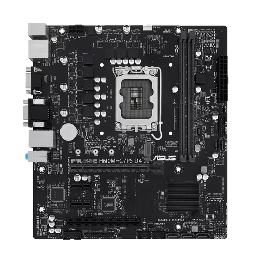 مادربرد ASUS PRIME H610-C/PS D4  چیپست؟ Intel H610، انتخابی ایدهآل برای ساخت سیستمهای پایدار و مقرونبهصرفه است. این مادربرد از پردازندههای نسل ۱۲ و ۱۳ اینتل (LGA 1700) شامل Core i9 تا Pentium پشتیبانی کرده و با طراحی ساده اما کارآمد، نیاز کاربران خانگی و اداری را بهخوبی برآورده میکند.